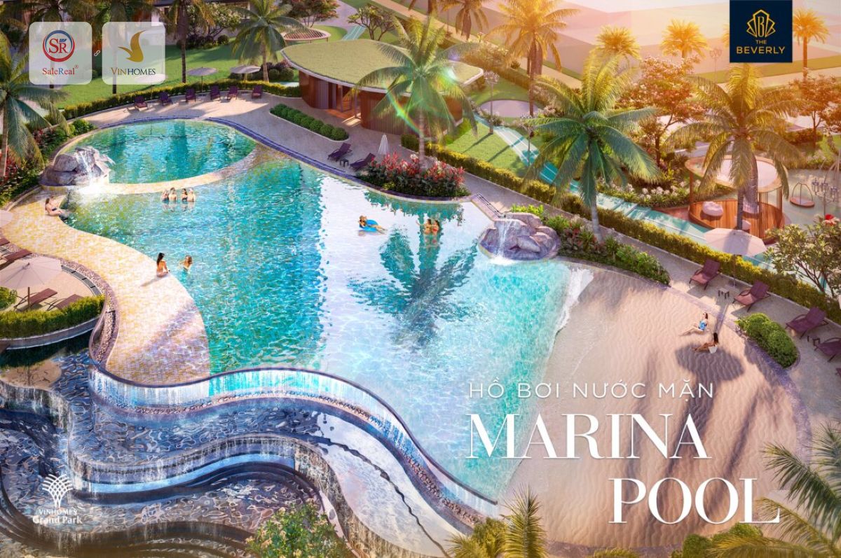 • Hồ bơi nước mặn Marina Pool: Với diện tích hơn 1,000m², hồ bơi nước mặn duy nhất tại Vinhomes Grand Park không chỉ giúp cư dân giải nhiệt mà còn mang lại trải nghiệm như nghỉ dưỡng tại các khu resort cao cấp.