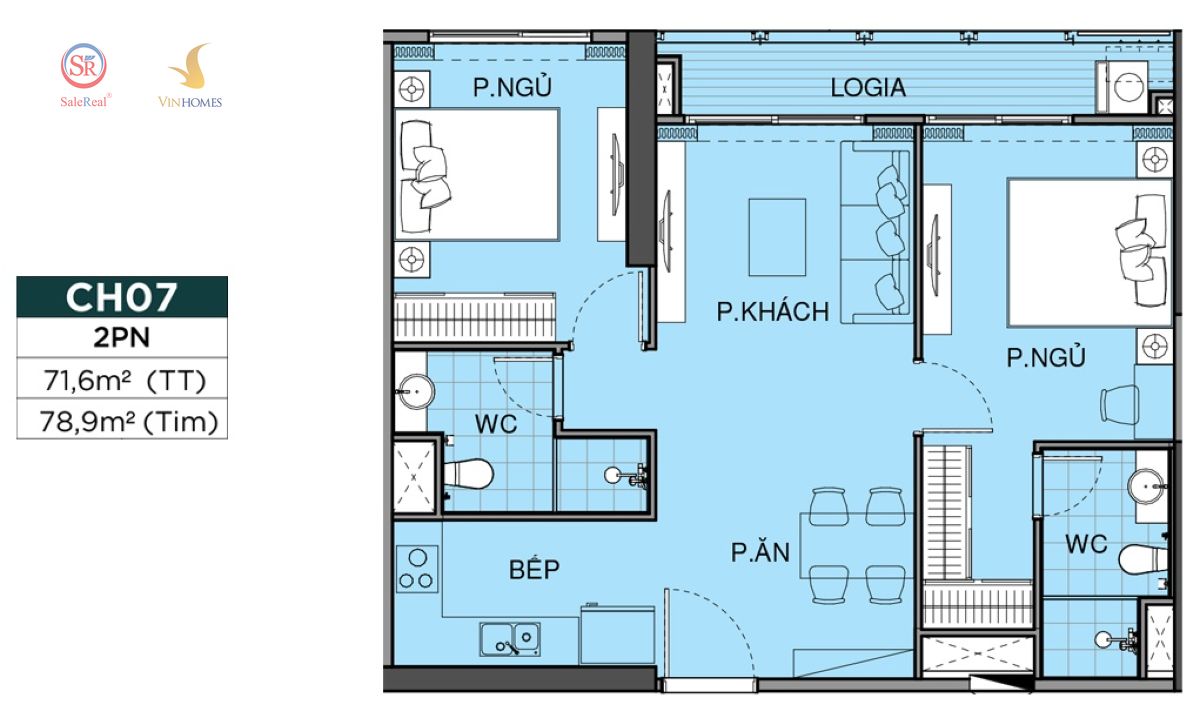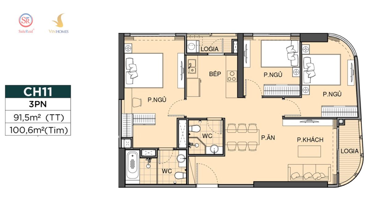 • Loại căn hộ: Studio, 1 PN, 1PN +, 2PN, 3 PN