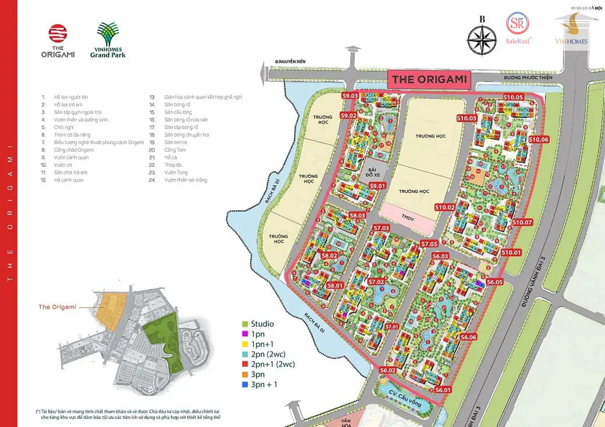 Vị trí The Origami ở trong khu đô thị Vinhomes Grand Park, ngay liền kề phân khu The Rainbow ngay mặt tiền tuyến đường Nguyễn Xiển huyết mạch của khu vực Long Thạnh Mỹ – Quận 9.