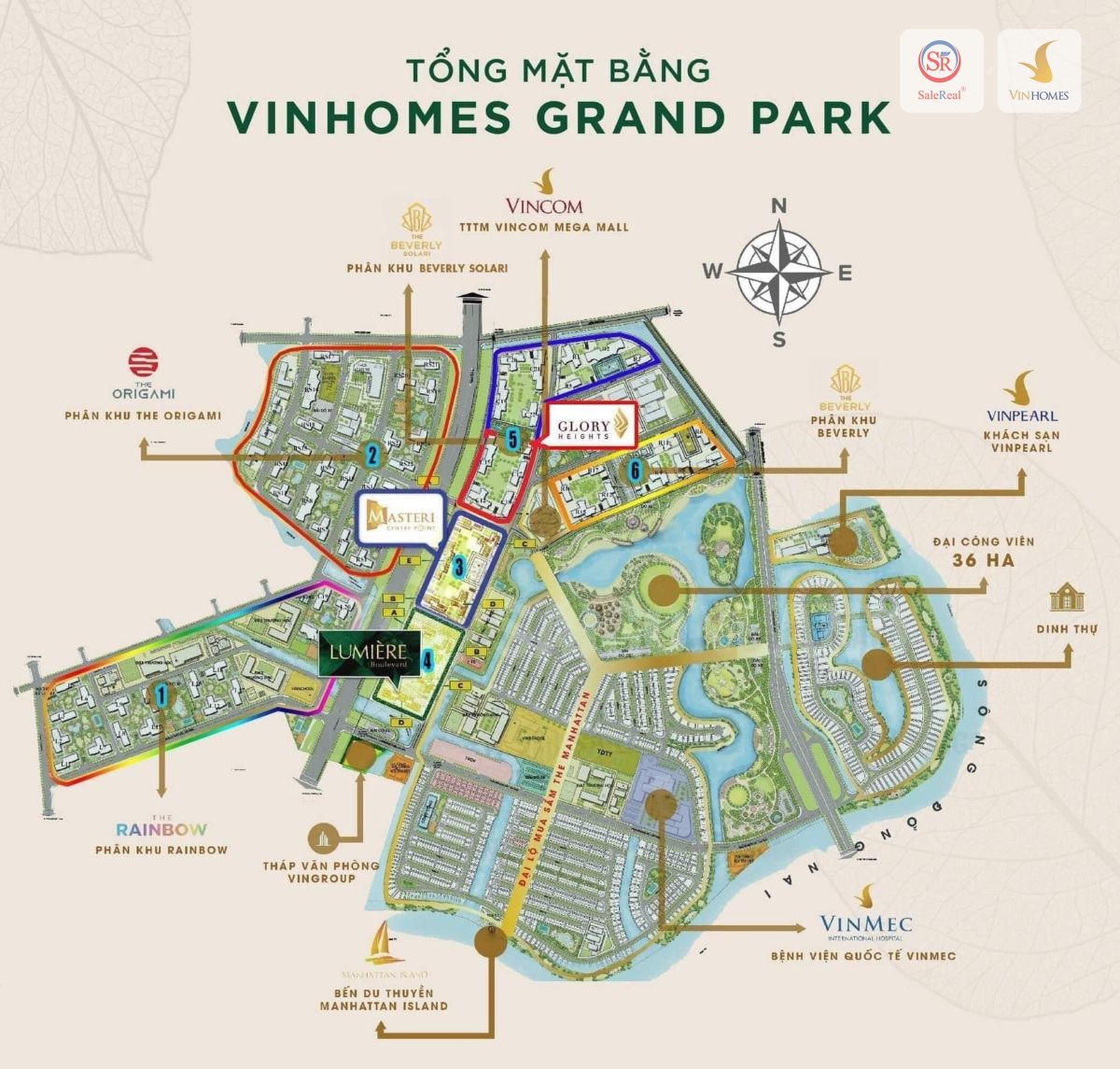 Công viên Grand Park rộng 36ha: là điểm nhấn đặc biệt với diện tích 36ha, mang đến một không gian xanh mát và thoáng đãng, tạo điều kiện lý tưởng cho cư dân thư giãn và tận hưởng không khí trong lành.