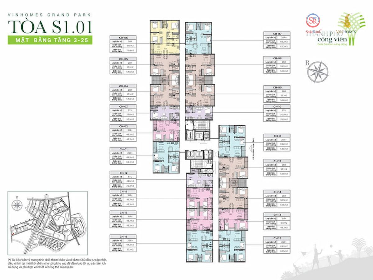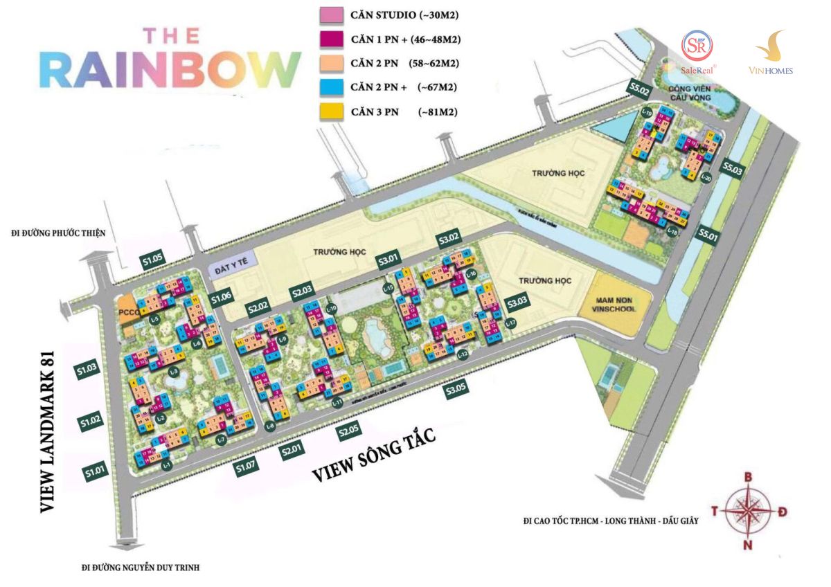 Mặt bằng The Rainbow được chia thành 4 cụm khu: S1, S2, S3 và S5