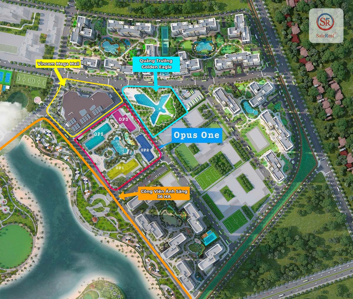 Vị trí The Opus One ở ngay bên cạnh trung tâm thương mại Vincom Mega Mall, quảng trường Gloden Eagle và công viên ánh sáng 36ha tại khu đô thị Vinhomes Grand Park. Từ vị trí dự án, cư dân chỉ cần di chuyển vài bước chân là có thể trải nghiệm ngay khu vui chơi giải trí VinWonders và sân tập golf 2 tầng đẳng cấp.