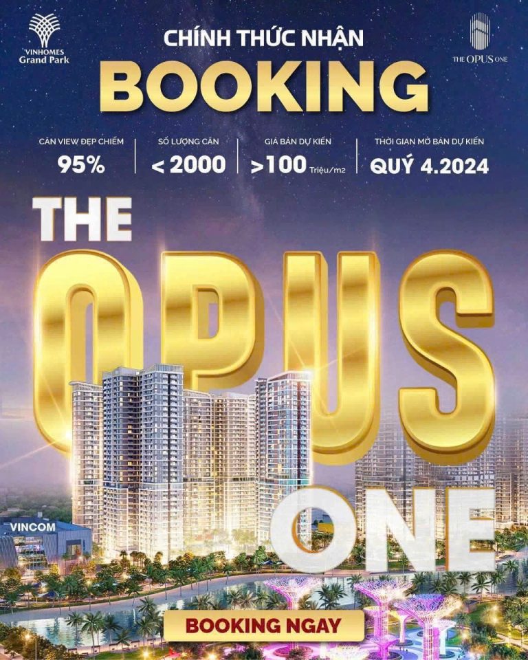 The Opus One là phân khu căn hộ nổi bật trong khu đô thị Vinhomes Grand Park do Vinhomes phát triển. Phân khu này là sự kết hợp hoàn hảo giữa vị trí đắc địa và thiết kế sang trọng, tạo nên một không gian sống lý tưởng cho cư dân. Với hệ thống tiện ích đa dạng và đẳng cấp như hồ bơi, phòng gym, khu vui chơi trẻ em, và công viên xanh mát, cư dân sẽ được tận hưởng những trải nghiệm sống đáng giá nhất.