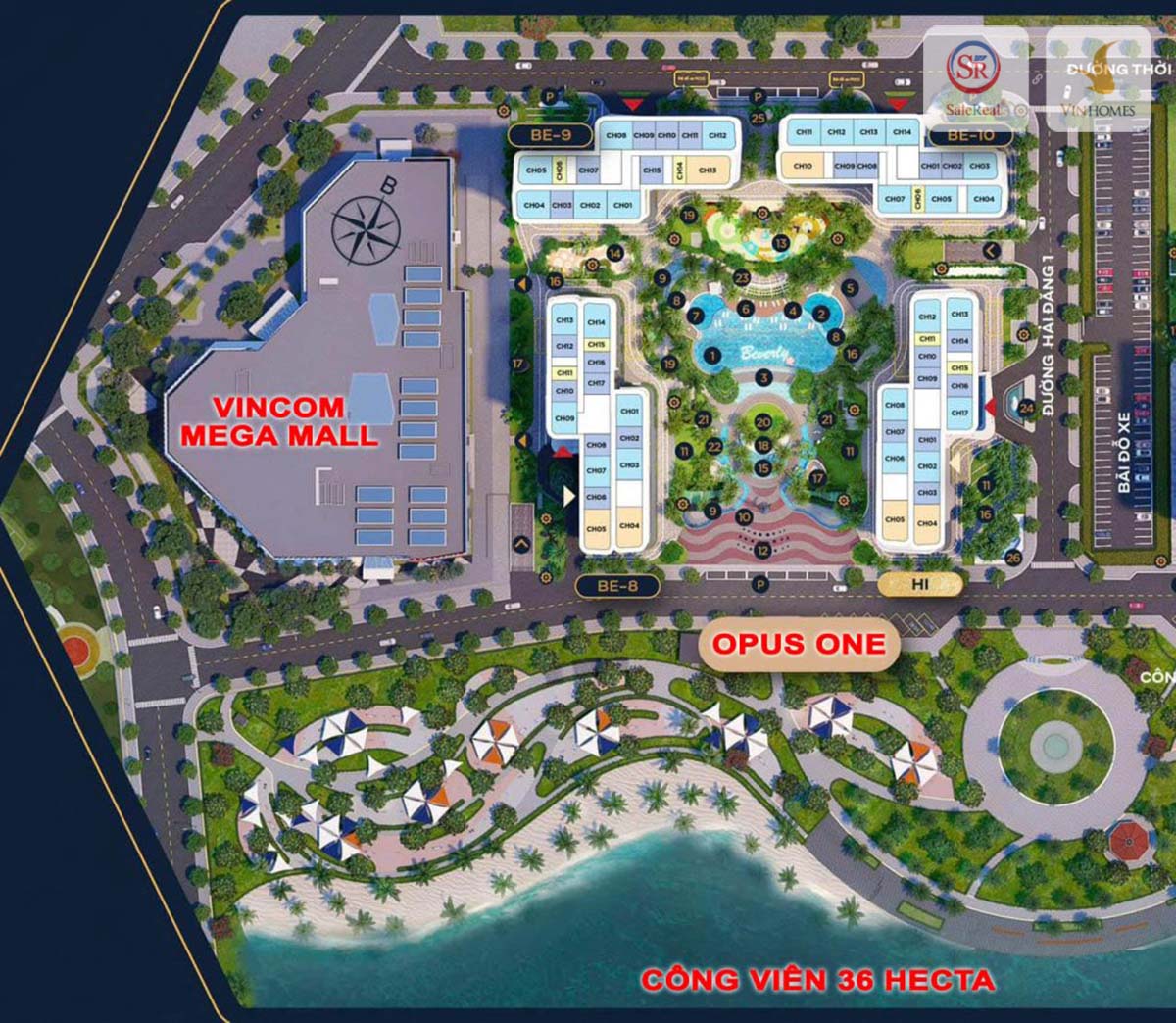 Vị trí The Opus One ở ngay bên cạnh trung tâm thương mại Vincom Mega Mall, quảng trường Gloden Eagle và công viên ánh sáng 36ha tại khu đô thị Vinhomes Grand Park. Từ vị trí dự án, cư dân chỉ cần di chuyển vài bước chân là có thể trải nghiệm ngay khu vui chơi giải trí VinWonders và sân tập golf 2 tầng đẳng cấp.
